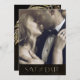 Wählen Sie ein altes Hollywood-Ambiente, indem Sie die in dieser Hochzeitssuite gezeigten Stücke verwenden. Schmuck kaskadiert von den mit Diamanten verkrusteten Palmen-Blätter, oder löschen Sie die Juwelen für ein etwas konservativeres Aussehen. Dieses Set zeichnet sich durch Blätter in goldenem Schimmer vor einem strukturierten Hintergrund, die reiche Farbe von schwarzem Kaffee. Die Hochzeitskarte "Save the Date" hier zeigt einen oberen Rand von glitzernden Blätter, einen eleganten Serif Schriftart mit dem Braut und Bräutigam Bild auf der Rückseite. Geben Sie einfach Ihre eigenen Foto- und Hochzeitsdetails mit der Vorlage ein. Sehen Sie sich den Link Sammlung auf dieser Seite an, um alle passenden Elemente in diesem schönen Set zu sehen, oder suchen Sie ID830, um zusätzliche Farboptionen für dieses Design zu sehen.