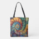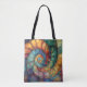 Ein Fraktal in Spiralform in Jadegrün, Saphir Blau, Gold und wertvollere Edelsteine schafft ein schönes Bild auf dieser Tasche.