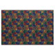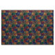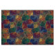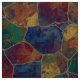 This vibrant fabric design features a captivating mosaic of irregular, organic shapes, reminiscent of stained glass or polished natural stones. Each "pane" is filled with a rich, marbling effect, blending deep jewel tones like sapphire blue, emerald green, and ruby red with warm accents of gold and fiery orange. Delicate, swirling lines of metallic gold trace through the colors, adding a touch of elegance and depth, while thin silver grout lines define each unique piece. This pattern offers a luxurious and artistic aesthetic, perfect for adding a bohemian, eclectic, or sophisticated touch to any sewing project, home decor item, or fashion accessory.