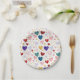 Make a statement with this rich and vibrant paper plate design. A sophisticated palette of deep navy, burgundy, plum, and goldenrod hearts creates a regal, warm atmosphere. Decorated with shimmering gold glitter dots and delicate botanical sprigs, this pattern is an excellent match for autumn weddings, sophisticated dinner parties, or milestone birthday celebrations.
