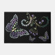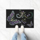 Kristall Butterfly Schmetterling Blume in lila grünen und weißen Kristall-Diamanten. Willkommen Funkelnd Schmetterling Bbling Mat Wohngestaltung. Handgezeichnete, mehrfarbige Juwelen, die auf schwarzem Hintergrund eine Schmetterlingsform schmücken. Teppichmatte vor oder hinter der Tür oder in der Küche, Passen Sie Ihren Text, Farbe, Stil auf Ihre Schmetterlingsmatte an, um Ihren Geschmack anzupassen. Hinweis: Rhinestones sind nicht vorhanden, dies ist handgezeichnetes Juwel auf Schmetterlingsschachtel.