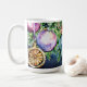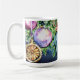 Wir Liebe diese Tasse mit ihrem Juwelenton Weihnachtsschmuck an einem Weihnachtsbaumzweig.