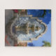 Dieses Bild eines alten mexikanischen Talavera Fliesenbrunnen an einer blauen Wand. Dieses Foto wurde im Restaurant Habaneros in San José del Cabo aufgenommen.