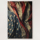 Jigsaw Puzzle patriotische amerikanische Fahne in schwingendem Stoffdesign mit Leinwand Material Textur Effekt.