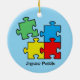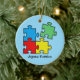 Jigsaw Puzzle Stücke Design Keramik Ornament mit anpassbarer Hintergrundfarbe und Text.