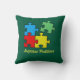 Jigsaw Puzzle Pieces Kissen Kissen mit anpassbarem Text und Hintergrundfarbe.
