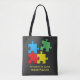 Jigsaw Puzzle Pieces Tote Bag mit anpassbarem Text und Hintergrundfarbe.