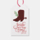 Dieses niedliche Weihnachtsgeschenk-Tag verfügt über einen karierten Cowboy-Stiefel in Rot und Schwarz-Büffel, komplett mit Spur, und den stilisierten Text darunter, der "Jingle ganz weg" sagt. Hinter dem Kofferraum stürzt ein Haufen heiliger roter Beeren hervor. Auf der Rückseite des Tags befindet sich das gleiche Boot-Image mit zwei benutzerdefinierten Textfeldern. Dieses Tag passt gut zu den Verpackungspapieren und Geschenktaschen in unserem Geschäft "Jingle All the Way".