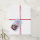 Auf diesen lustigen Weihnachtsgeschenktafeln liefert ein als Weihnachtsmann verkleideter Dinosaurier Geschenkpakete. Der stylisierte rote Text über dem Bild sagt "Jingle all the Way". Bild und Text werden auf einem himmelblauen Aquarellhintergrund platziert. Auf der Rückseite des Tags befindet sich ein anderes Bild des Dinosauriers und Ihr eigener Text.