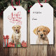 Auf der einen Seite dieses Weihnachtsgeschenk-Tag ist ein schönes Bild eines gelben Labrador Retriever Hund. Hell verpackte Geschenkpakete stehen vor ihm. Der stylisierte rote Text über dem Bild sagt "Jingle all the Way". Auf der Rückseite des Tags befindet sich ein anderes Bild eines Welpen-gelben Labradors und ein eigener Text. Vergewissern Sie sich, die Auswahl der Retriever Holiday Geschenke und Geschenkpackungen in unserem Geschäft zu sehen.
