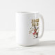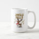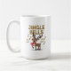 Jingle Bells Singing Reindeer Coffee Mug. A mischievous reindeer snuck away from cheerful reindeer carollers, joyfully singing Jingle Bells alone, surrounded by floating music notes and festive magic, looking absolutely adorable.