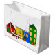 Make gift giving merry and memorable with this large glossy holiday bag featuring Jingle Claws, the playful Christmas cat. The front showcases the full Train Town scene in charming hand-drawn digital art, while the back reveals a comical close-up of Jingle Claws with a Christmas Tree behind him. Perfect for cat lovers, fantasy art fans, and anyone who enjoys whimsical holiday style. High-quality glossy finish with vivid color and durable handles-a festive reusable keepsake bag that doubles as part of the gift.