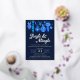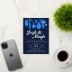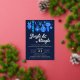 Dieses Weihnachtsgeschmacksmuster zeigt handgemalte Aquarelltöne im Vintagen Stil mit Weihnachtsbaumschmuck in Blau und Türkis auf dunkelmarineblau mit Goldfolientext. Der Text lautet "jingle and mingle" und Sie können alle Ereignisdetails anpassen. Auf der Rückseite der Einladung ist ein Muster der gleichen alten Weihnachtsschmuck auf dunkelblau. Sehen Sie sich die gesamte passende Auflistung an. Alle Kunstwerke sind von Hand illustriert und urheberrechtlich geschützt.