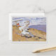 Eine Postkarte, auf der Joaquín Sorollas Gemälde einer Frau am Strand zu sehen sind, mit sanften Meereswellen am Ufer.