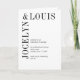 Modernes gefaltetes Hochzeitsprogramm mit minimalistischem Schwarz-Weiß-Design mit Ihren Namen in einem großen Schriftart entlang der links Seite und oben. Dieses Design ist einfach genug für eine feierliche Hochzeit, aber macht eine kühne Aussage.
