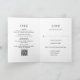 Modernes Ganzes in einer gefalteten Hochzeitseinladung mit einem minimalistisch schwarzen Design mit Ihren Namen in einem großen Schriftart entlang der links Seite und oben. Das Kartenfeld des Gehäuses verfügt über einen optionalen QR-Code. Sie können den QR-Code im Entwurfstool entfernen. Dieses Design ist einfach genug für eine feierliche Hochzeit, aber macht eine kühne Aussage.