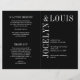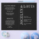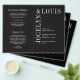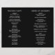Modernes gefaltetes Hochzeitsprogramm (auf dünnem Druckpapier gedruckt und entfaltet sich) mit minimalistischem Schwarz-Design mit Ihren Namen in einem großen Schriftart entlang der links Seite und oben. Dieses Design ist einfach genug für eine feierliche Hochzeit, aber macht eine kühne Aussage.