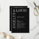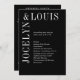 Modernes Hochzeitsprogramm mit minimalistischem Schwarz-Design mit Ihren Namen in einem großen Schriftart entlang der links Seite und oben. Dieses Design ist einfach genug für eine feierliche Hochzeit, aber macht eine kühne Aussage.