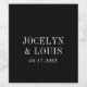 Modernes Hochzeitsweinetikett mit minimalistisch schwarzem Design, mit Ihren Namen in einem großen Schriftart und Ihrem Hochzeitsdatum. Dieses Design ist einfach genug für eine feierliche Hochzeit, aber macht eine kühne Aussage.