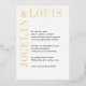 Moderne Goldfolie-Hochzeitseinladung mit minimalistischem Design mit Ihren Namen in einem großen Schriftart entlang der links Seite und oben. Ihre Namen sind in echter Folie und alle Texte auf der Vorderseite können im Designbearbeitungstool in Folie geändert werden. Die Rückseite hat Ihr Monogramm. Dieses Design ist einfach genug für eine feierliche Hochzeit, aber macht eine kühne Aussage.