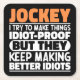 Funny Jockey Redewendungen "Jockey Ich versuche, Dinge zu machen idiot Proof, aber sie Behielt, besser Idioten". Nimm dieses Funny Jockey Design als lustige Geschenke für eine phantastische Mutter, einen Vater oder einen Freund.