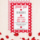 Jockey Seidendot pattern Derby Day Einladung für Ihr Pferderennen Party. Eine lustige Tradition, die ein traditionelles Polka Dot Muster in leuchtenden Farben für Ihr derby Party beinhaltet. Passen Sie den Ereignisnamen, Ihren Namen, das Datum und die Uhrzeit an. Fügen Sie einige Highlights zu Ihrer Veranstaltung hinzu, einschließlich Kleidung. Enthält einen Platz für die UAWG per E-Mail oder Telefon. Farben: Rot und Weiß sind traditionell, aber man kann die Farben in jedem Anzug ändern.