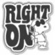 Karo diese krasse Grafik von Snoopys alter-ego Joe Cool, der sich gegen die Worte "Right On" lehnt.