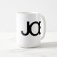 Der große Text auf dieser Tasse schafft macht die Tasse interessant sowie die überschneidenbuchstaben.