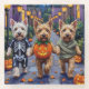 Adorable Wheaten Terriers, die in verspielten Halloween-Kostümen gekleidet sind, tragen Kürbiseimer, während sie unter dem mondbeleuchteten Himmel tricksen oder behandeln. Dieses festliche Design hebt den weichen, gewellten goldenen Mantel der Rasse, die hellen Augen und die freundliche Persönlichkeit hervor, was die sprichwörtliche und dennoch lustige Atmosphäre Halloween-Abends perfekt einprägt. Ein herzliches Fest für Wheaten Terrier Fans, Hundefreunde und Halloween-Fans.