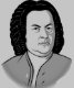 Johann Sebastian Bach Cartoon in schwarz weiß grau