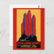 Das neu gestaltete und digital verbesserte Vintage-Reiseplakat zeigt Wolkenkratzer mit kleineren Gebäude. Unvollkommenheiten beseitigt. Farben korrigiert. Bild mit freundlicher Genehmigung der Kongressbibliothek.