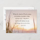 Die Postkarte der Inspirationsschrift zeigt ein Naturfoto mit Schilf am Strand und einem wunderschönen Sonnenuntergang am Ozean. Es enthält einen Teil der Bibel Verse John 16:13, "Wenn der SPIRIT der Wahrheit kommt, wird ER DIR IN ALLE WAHRHEIT LEITEN ... und er wird dir verkünden, was kommen wird."_
