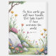 In einem skurrilen Fantasiegarten führt ein kurvenreicher Weg durch lebendige Blüten. Die Inschrift von John 16:33: "In dieser Welt wirst du Schwierigkeiten haben. Aber Herz! Ich habe die Welt überwunden." Das Bild lädt die Besucher zum Nachdenken ein und erinnert sie daran, dass Herausforderungen Teil der Reise sind, selbst in einem Bereich des Staunens, aber Hoffnung herrscht.