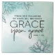 Die Keramik der Inspirationswörterbücher zeigt ein Blumendesign mit handgezeichneten Blume auf blauem und weißem abstraktem Hintergrund. Es zeigt Bibel Verse Johannes 1:16: " Aus Seiner Fülle haben wir alle Gnade auf Gnade empfangen." _