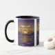 Diese zweifarbige Tasse zeichnet sich durch ein typografisches Design aus, das einen Loubag-Print-Schriftart mit lila Briefen, eine goldfarbene Kontur mit der "John 1:17" KJV Bible Scripture Vers über einem Bild zeigt, das einen großen gelben Mondsonnenuntergang mit Sternen über einem lila tropischen Meer in diesem religiösen Thema zeigt. Dieser Vers bezieht sich auf das Buch des Johannes 1. Kapitels, das den 17. Vers dieses Bibel Zitat Thema aus der King-James-Bibel zeigt. Die Felgen & Griffe sind in passenden Farbtönen in Mikrowellen- und Geschirrspüler-Keramik in 11 Unze- oder 15 Unzen-Größen erhältlich.