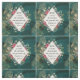 Weihnachtsstoff mit Inspirationsurteil zeigt ein wunderschönes Aquarellbild mit dunkelgrünem Hintergrund, Zierlampen, Blume, roten Beeren und Goldplättchen. Es zeigt einen Teil von Bibelverse John 3:16, "Für Gott so geliebt die Welt, dass Er Seinen einzigen vergessenen Sohn gab."