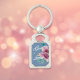 Eleganter Schlüsselanhänger mit John 3:16 in anmutiger Schrift, Set vor einem reichen blauen Hintergrund mit Aquarellfarben-Rosa-Flora. Ein sinnliches Geschenk für Liebende oder ein liebevolles religiöses Accessoire für sich.