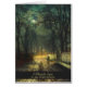 Grußkarte inspiriert von einem schönen nocturne Gemälde des britischen Künstlers John Atkinson Grimshaw mit dem Titel A moonlit lane. 1874, als John Atkinson Grimshaw auf dem Höhepunkt seiner Karriere stand, wurde eine mondbeleuchtete Spur gemalt. Es wird als ein sehr gutes Beispiel für die Fähigkeit des Künstlers angesehen, die Stimmung einer mondbeleuchteten Nacht bis spät in den Herbst zu erfassen. Das Bild zeigt eine nasse, glänzende Straße, die von nackten Bäumen gesäumt ist. Zwei weit entfernte Figuren gehen weg vom Betrachter, einem Erwachsenen und einem Kind. Die Straße wird nur (oder größtenteils) durch das Licht des Vollmonds beleuchtet, gefiltert durch einen bewölkten Nachthimmel.