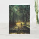 Grußkarte inspiriert von einem schönen nocturne Gemälde des britischen Künstlers John Atkinson Grimshaw mit dem Titel A moonlit lane. 1874, als John Atkinson Grimshaw auf dem Höhepunkt seiner Karriere stand, wurde eine mondbeleuchtete Spur gemalt. Es wird als ein sehr gutes Beispiel für die Fähigkeit des Künstlers angesehen, die Stimmung einer mondbeleuchteten Nacht bis spät in den Herbst zu erfassen. Das Bild zeigt eine nasse, glänzende Straße, die von nackten Bäumen gesäumt ist. Zwei weit entfernte Figuren gehen weg vom Betrachter, einem Erwachsenen und einem Kind. Die Straße wird nur (oder größtenteils) durch das Licht des Vollmonds beleuchtet, gefiltert durch einen bewölkten Nachthimmel.