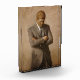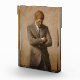 Das Jahr war 1961. John F. Kennedy, ein junger und tatkräftiger Senator, war gerade als 35. Präsident der Vereinigten Staaten eingeweiht worden. Die Luft des Wandels erfüllte das Land. Kennedy enthüllte mit seinem ansteckenden Optimismus seine "New Frontier"-Agenda, einen Aufruf, die Grenzen des Fortschritts in den Bereichen Raum, Bildung und Soziales zu überschreiten. Er gründete das Friedenscorps und schickte idealistische junge Amerikaner ins Ausland, um den bedürftigen Gemeinschaften zu dienen. — Doch die Bühne der Welt war alles andere als friedlich. Der Kalte Krieg warf einen langen Schatten, und die Spannungen mit der sowjetischen Gewerkschaft waren auf einem Allzeithoch. Die versagt Schweinebucht-Invasion in Kuba, eine verdeckte Operation, die während der Regierung Eisenhower grünlich beleuchtet wurde, wurde zu einem dunklen Fleck in Kennedys frühen Tagen. Die Welt schaute mit dem rasenden Atem zu, wie sich die Kubakrise 1962 entfaltete. Dreizehn schmerzliche Tage des Abgrunds mit dem drohenden nuklearen Krieg zwangen Kennedy, unter immensem Druck wichtige Entscheidungen zu treffen. Obwohl letztlich eine friedliche Lösung erreicht wurde, diente die Krise als krasse Erinnerung der Gefahren des Kalten Krieges. — Im Inland gewann der Kampf für die Rassengleichheit an Dynamik. Die Bewegung für Zivile Rechte verlangte Maßnahmen. Während Kennedy Schritte wie die Integration der Universität Mississippi unternahm, wurde er kritisiert, weil er nicht genug getan hatte. Das Portrait, das wir von ihm sehen, resolut, aber kontemplativ, könnte das Gewicht dieses Kampfes und die Komplexität der Bewältigung des sozialen Wandels widerspiegeln. - Vietnam, ein schwelender Konflikt während der 1950er Jahre, eskalierte während Kennedys Präsidentschaft. Er hat die Anzahl der amerikanischen Militärberater erhöht - eine Entscheidung, die weit reichende Folgen hätte. - John F. Kennedys Präsidentschaft wurde 1963 durch die Ermordung tragisch kurz gekürzt. Obwohl seine Amtszeit kurz war, war dies ein entscheidender Moment in der amerikanischen Geschichte. Das Bild von ihm, das er in seinem offiziellen Porträt festgehalten hat, spiegelt nicht nur einen Augenblick in der Zeit wider, sondern auch das Gewicht der Führung in einer Phase immenser Herausforderungen und Chancen. Er wird für seinen Idealismus und seine Rolle bei der Gestaltung einer neuen Ära in Erinnerung behalten, aber sein Vermächtnis besteht auch darin, komplexe Herausforderungen zu bewältigen und schwierige Entscheidungen auf der Bühne der Welt zu treffen. — Dieses Werk ist in den Vereinigten Staaten öffentlich zugänglich, weil es zwischen 1926 und 1977, inklusive, ohne Copyright-Hinweis, in den Staaten veröffentlicht wurde. John F Kennedy Offiziell Portrait von Aaron Shikler ist das offizielle Präsidentenportrait im Weißen Haus.