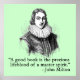 John Milton, Autor von Paradise Lost, Dichter und ziviler Diener, war auch ein großer Befürworter der Redefreiheit, der Freiheit des Individuums und der Bücher! Dieses Poster zeigt Milton Vintag und sein Zitat "Ein gutes Buch ist das wertvolle Lebensblut eines Meistergeistes". Hintergrund- und Randfarben sind nur eine Empfehlung; Sie können sie ändern oder in eine beliebige Farbe löschen.