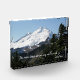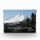 Akryles Foto, das ein landschaftliches, landschaftlich geprägtes Foto von schneebedecktem Mount Baker aufweist, einem hohen Berggipfel in den Nordkaskaden des Pazifiks im Nordwesten, zusammen mit einem inspirierend Zitat des Naturisten John Muir, das lautet: "Die Berge rufen an und ich muss gehen."