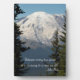 Plaque mit Scharnier, das ein landschaftliches Foto von majestätischen, schneebedeckten Berg-Rainier- und immergrünen Bäumen zeigt, zusammen mit einem inspirierend Zitat des Naturforscher John Muir, das lautet: "Zwischen allen zwei Kiefern ist ein Tor zu einer neuen Welt."