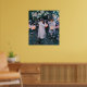 Zwei Mädchen in hellen Papierlaternen in einem Garten bei Dämmerung mit Blume, die sie umgeben, einschließlich Lilien, Rose und Nelken.