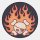 Cartoon Piratenschädel und Kreuzknochen in großen Flammen. Farbe, T - Shirt, Schweiß, Karten, Geschenke.