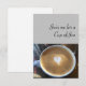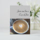 Bild von Cappuccino auf grauem Hintergrund mit den Worten "Join me for a Cup of Joe". Bleiben Sie auf der Rückseite für Ihre Nachricht.