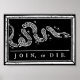 Das "Join or Die"-Print war ein von Benjamin Franklin geschaffener politischer Cartoon. Die hier gezeigte Schlange ist in Segmente aufgeteilt, genau wie die ursprünglichen Kolonien aufgeteilt wurden. Der Cartoon wurde benutzt, um die Kolonien zu vereinen, um gegen die Briten zu kämpfen. Feiern Sie die amerikanische Geschichte mit diesem digital restaurierten Vintage Poster aus dem The War Is Hell Store. Woll mehr Militär- und Geschichtsprodukte? Karo
