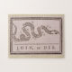 This puzzle would be a fun way to educate children about the American Revolution. Join or Die by Benjamin Franklin, First Published May 9, 1754. of a wood cut. This is Benjamin Franklin's warning to the British colonies in America "join or die" exhorting them to unite against the French and the Natives, shows a segmented snake, "S.C., N.C., V., M., P., N.J., N.Y., [and] N.E." This image is a derivative Library of Congress Reproduction Number: LC-USZC4-5315. Image was digitally colorized and altered to fit product.