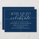 Celebrate love the night before with this modern classy wedding navy blue wedding rehearsal dinner invitation card (join us to celebrate). Designed with elegant scalloped detailing and modern typography, it beautifully balances simplicity and sophistication. Customise with your details to create a meaningful pre-wedding invite that perfectly complements your timeless wedding style.