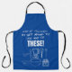 Sonnenblende Schürze mit der Zeile "Nur damit Sie wissen, ich habe keine Angst, eines dieser" Set auf einem Mixer, Whisk, Holzlöffel, Messbecher, Mischschüssel und Ofen. Ideal für den Koch mit einem Sinn für Spaß.